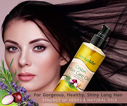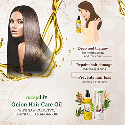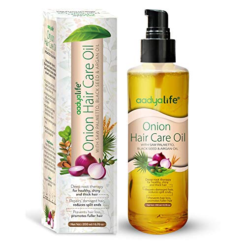 With a blend of natural oils, Aadya Life Onion hair care oil is enriched with vitamins, antioxidants, and fatty acids, which help nourish and keep the scalp and hair, healthy, shiny & silky. It penetrates deeper and faster into hair roots, leading to soft, silky, and shiny hair. It hydrates the hair deep within and treating the hair follicles from the inside-out and prevent hair cell damage. It intensely moisturizes hair strands, prevents damaged hair and breakage, helps to prevent hair loss, as well as aids in hair growth.