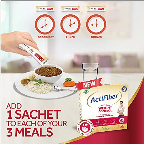 NEEDS NO CHANGE IN FOOD HABITS: You can have ActiFiber Natural Weight Control with your normal homemade food. Just add 1 sachet to each of your 3 main meals. It dissolves easily with no taste, odour, or colour, thus fitting into your regular diet effortlessly.