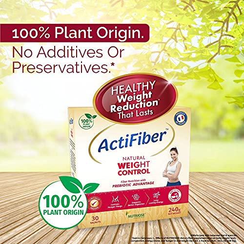 ActiFiber Natural Weight Control is a 100% Plant Based Fiber Nutrition with Prebiotic Advantage. It helps control hunger pangs, reduces extra calorie intake, and thus helps in Healthy Weight Reduction That Lasts. Its Prebiotic Advantage regulates your appetite and improves your digestive health.