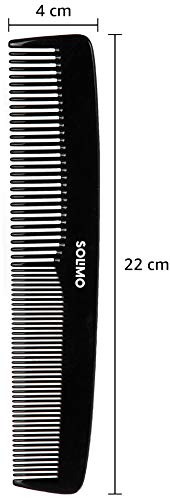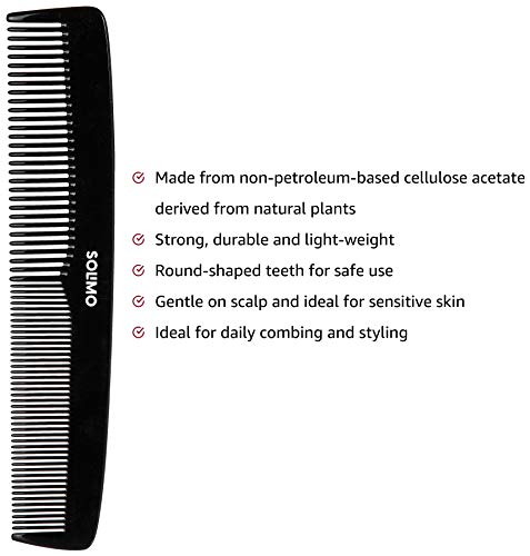 Solimo brings to you this easy-to-use hand-made black comb. It is made from non-petroleum-based cellulose acetate derived from natural plants, which prevents static while combing. It has strong, smooth-rounded teeth that offer comfortable combing and reduce hair fall. The comb is also gentle on the scalp, making it ideal for sensitive skin. Solimo handmade black comb is ideal for styling and grooming your hair, or adding volume and luster.