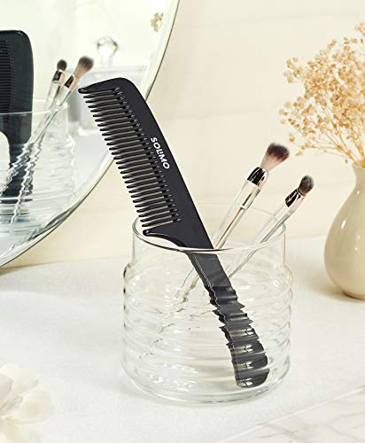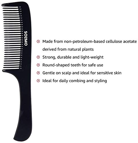 Solimo brings to you this easy-to-use hand-made black comb. It is made from non-petroleum-based cellulose acetate derived from natural plants, which prevents static while combing. It has strong, smooth-rounded teeth that offer comfortable combing and reduce hair fall. The comb is also gentle on the scalp, making it ideal for sensitive skin. Solimo handmade black comb is ideal for styling and grooming your hair, or adding volume and luster.
