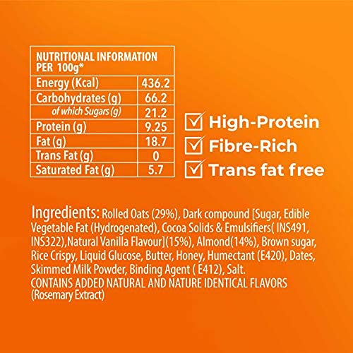 BURST OF FLAVOR – With a rich mix of dark choco, real almonds, roasted oats, dates and honey, our energy bars are a filling fix for all your cravings.