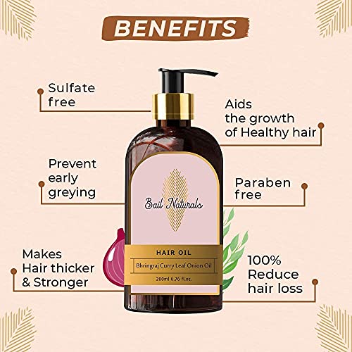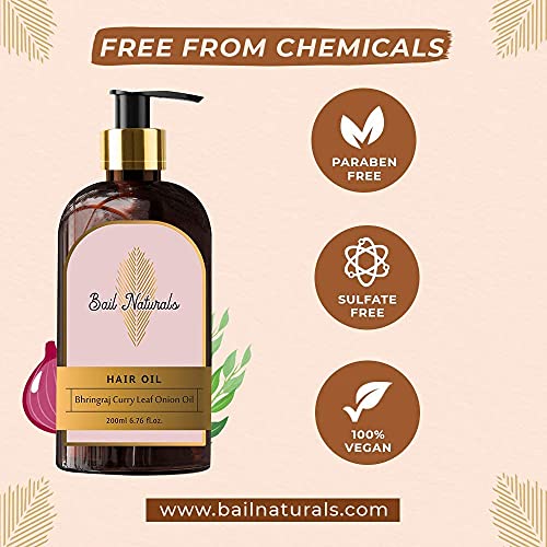 Bail Naturals Bhringraj Curry Leaf Onion Hair Oil for Hair and Scalp (200 ml)