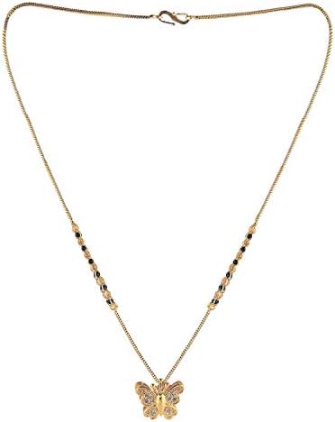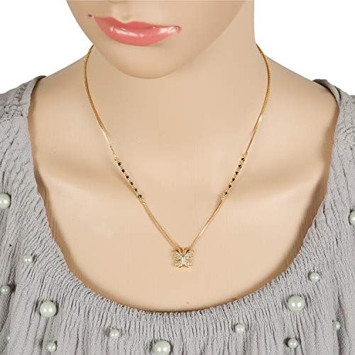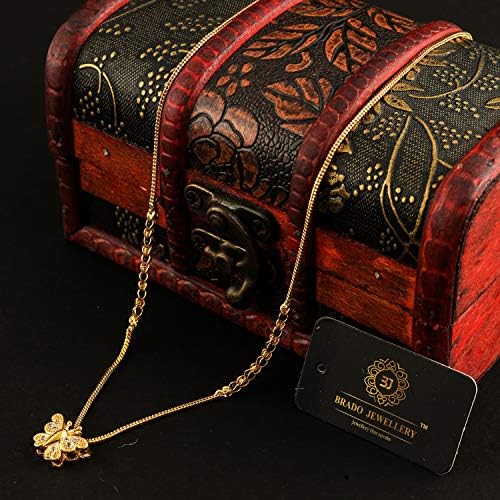 Sales package – 1 AD Pendant Necklace Chain Mangalsutra. Pendant has 1 Gram Micro Gold Plated Golden Chain.Size : 18 Inch Full Length.Brado’s Dazzling Gold Plated Wedding Jewellery American Diamond Necklace Mangalsutra For Women. This Jewelry offers a wide range of wedding jewelry. It is every woman’s essential to have a beautiful jewelry all the time since they are so elegant and eye-catching for special wedding and festive occasions. The array of jewelry we present is the perfect blend of tradition and modernity that looks sophisticated yet conventional. This jewelry is suitable for women and girls of all ages.This Brado’s Gold Plated Necklace Mangalsutra features a classic pattern studded with American Diamond. Women nowadays cherish and adorn designer imitation Jewelry due to its variability in designs and unique patterns and also it perfectly unites with the desired outfit at every occasion and compliments the amazing personality of them. The jewelry is elegantly designed to make you ooze royal vibes when you wear them on for special occasions. This Necklace patterns along with American Diamond embedded on them make them look extra ordinarily graceful.Necklaces are the identity of Indian women and a symbol of grace. They Have Special Importance on Ring Ceremony, Wedding And Festive Time. They Can Also Wear It On Regular Basics. Make Your Moment Memorable with This Range. Ideal Valentine, Birthday, Anniversary gift your loved ones.Brado Jewellery has Ad diamond Wedding Wear Collection Check Through Our Brand Store!!!!!