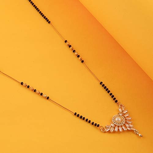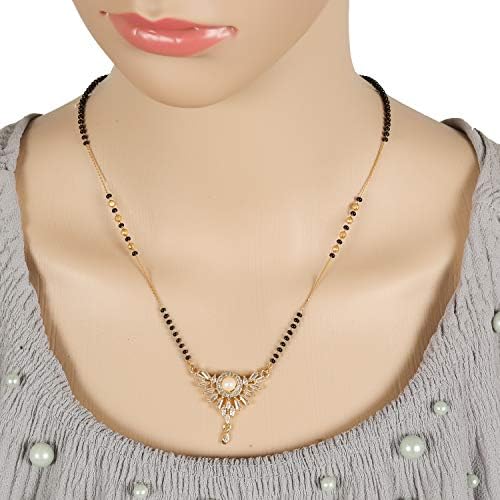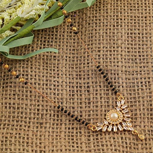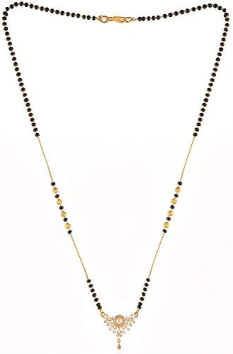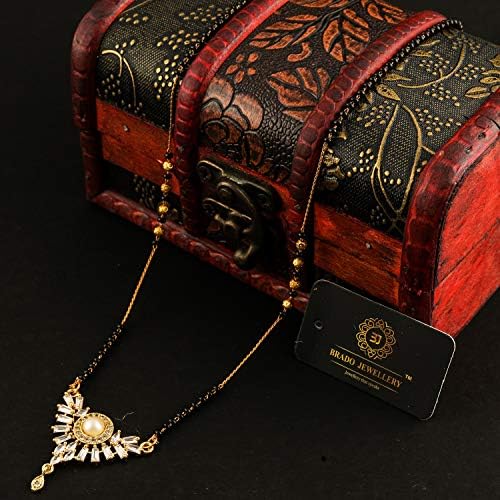 Sales package – 1 AD Pendant Necklace Chain Mangalsutra. Pendant has 1 Gram Micro Gold Plated Golden Chain.Size : 18 Inch Full Length.Brado’s Dazzling Gold Plated Wedding Jewellery American Diamond Necklace Mangalsutra For Women. This Jewelry offers a wide range of wedding jewelry. It is every woman’s essential to have a beautiful jewelry all the time since they are so elegant and eye-catching for special wedding and festive occasions. The array of jewelry we present is the perfect blend of tradition and modernity that looks sophisticated yet conventional. This jewelry is suitable for women and girls of all ages.This Brado’s Gold Plated Necklace Mangalsutra features a classic pattern studded with American Diamond. Women nowadays cherish and adorn designer imitation Jewelry due to its variability in designs and unique patterns and also it perfectly unites with the desired outfit at every occasion and compliments the amazing personality of them. The jewelry is elegantly designed to make you ooze royal vibes when you wear them on for special occasions. This Necklace patterns along with American Diamond embedded on them make them look extra ordinarily graceful.Necklaces are the identity of Indian women and a symbol of grace. They Have Special Importance on Ring Ceremony, Wedding And Festive Time. They Can Also Wear It On Regular Basics. Make Your Moment Memorable with This Range. Ideal Valentine, Birthday, Anniversary gift your loved ones.Brado Jewellery has Ad diamond Wedding Wear Collection Check Through Our Brand Store!!!!!