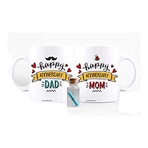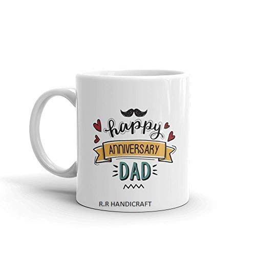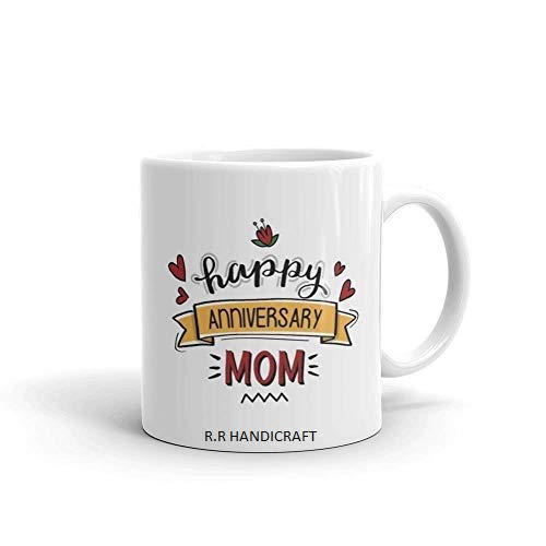 RADHE RADHE HANDICRAFT This adorable mug for your parents is a perfect gift for their anniversary. The mugs have the content ‘Happy Anniversary Mom’ & ‘Happy Anniversary Dad’ printed on it. Since coffee always tastes better with a heartfelt wish!!