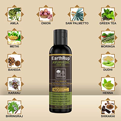 Natural Ingredients: EarthRup Hair Oil is an Ayurvedic and Non-toxic formulation with all plant based ingredients devoid of any Mineral Oil, Silicon, Parabens and Hexanes.