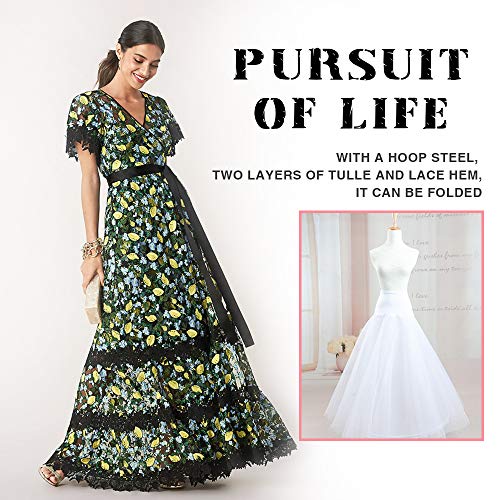 A crinoline petticoat for wedding gown, features one hoop steel, two layers tulles with lace hem and can be folded