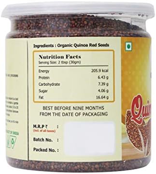 Package Content: 1 X 350 Gm of Food Products Gluten-free Red Quinoa Seed; Quantity: 350 Gm; Shelf Life: 270 Days; Ingredient Type: Vegetarian