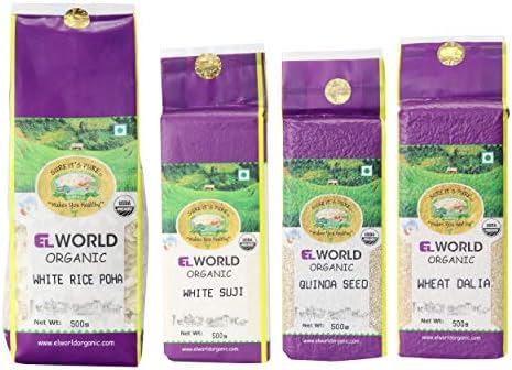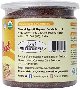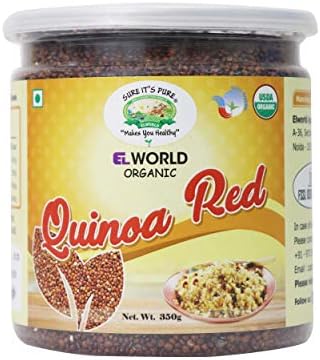 This product in the display is an organic red quinoa weighing 350 gram. (quinoa health benefits) quinoa is one of the world’s most popular health foods. Quinoa is among the least allergenic of all the ‘grains’, making it a fantastic wheat-free choice. Quinoa is gluten-free, high in protein and one of the few plant foods that contain all nine essential amino acids. It is also high in fiber, b vitamins, magnesium, iron, potassium, calcium, phosphorus, vitamin e and various beneficial antioxidants. Red quinoa has a richer taste, slightly chewier texture, and somewhat nuttier flavor compared to white quinoa. At elworld organic, we care about making you enjoy the food you love. We believe in transparency of ingredients and feel responsible to make you aware about how we source best of the ingredients and utilize them in making the most healthy range of products.