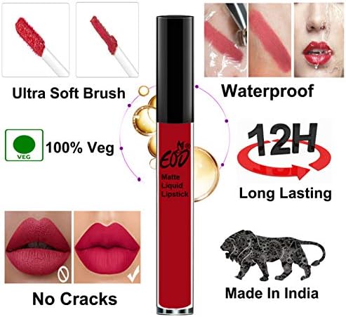 This combo has two popular shades and buying product in combo. Liquid Lipsticks are 100% Veg and Manufactured in India product. It gives you matte finish that stay long on lips. Its light formula will not bleed or transfer on cup. The brush has wide and flexible range for the easiest application.