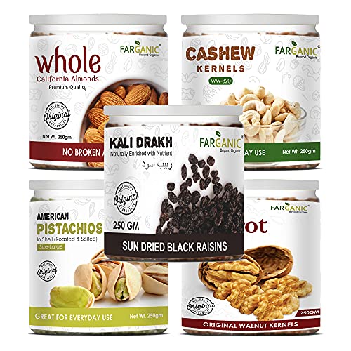 Why Farganic : All Farganic Dry Fruits are scratch less and Jumbo in size and Comes in Temper Proof Packaging in reusable Container to keep them fresh in kitchen