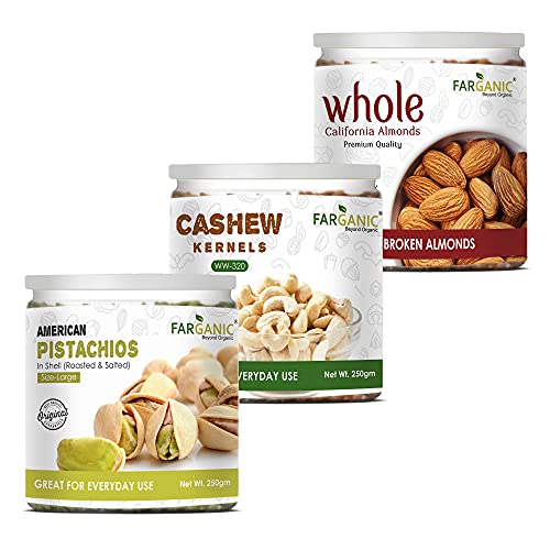Why Farganic : All Farganic Dry Fruits are scratch less and Jumbo in size and Comes in Temper Proof Packaging in reusable Container to keep them fresh in kitchen