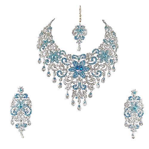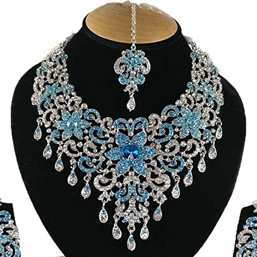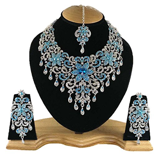 Crafted with perfection, exquisiteLatest Gorgeous Crystal- Pearls Designer Zircon Silver Plated Necklace Jewelry Set, the artistry, stone studded combination transports you to the magical world of jewelry where words are not enough. Add this exquisite piece of manng tikka set in your collection. It is a right mix of modernity and tradition. Team it up with lehenga style saree and nude make up to take the party on a storm. Hard to miss!This awesome set helps you to express happiness inside you. It surely does magic to your traditional outfit. It steals your heart. This ethnic fashion accessory enhances your beauty so that you can make a grand entrance to any of your special occasions. This uniquely designed Necklace Earrings and Maang Tikka match traditional as well as contemporary outfits.An accessory that every fashionista must have!necklace goes well with matching sare and western attire. It will give you a smart edge.Add bling to your look with crystal embedded necklace, mang tikka and earrings. Wear it with traditional or modern ensembles to look gorgeous.Crafted with perfection, exquisite design, the artistry, stone studded combination transports you to the magical world of jewelry where words are not enough. It surely does magic to your traditional outfit. It steals your heart.Made from high quality material it is rust resistant and will last for years to come.