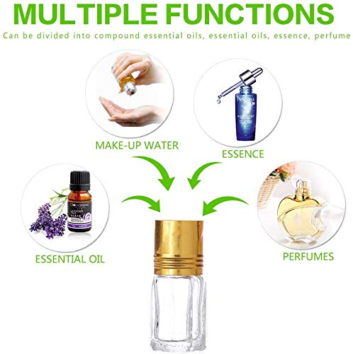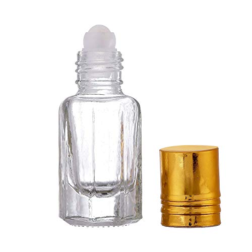 Refillable, Reusable, High Quality Glass Roll on Bottles with Golden Cap(Top) Ideal for Storage & Travel Content