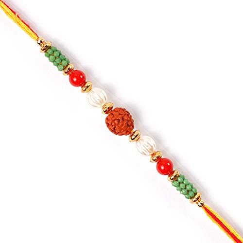 A beautiful gift box containing mawa white pedeas and mawa kesar pedas . (Net Weight: 200 gms)..This comes with a traditional rakhi thread traditionally designed with beads and stones to make it unique in its own way.the same rakhi would be send as shown in the image, but if some last minute shortage arises,something similar would be send. Roli, chawal and chandan pouches go along with this product. This mithai has been specially packed using italian technology for an extended shelflife.