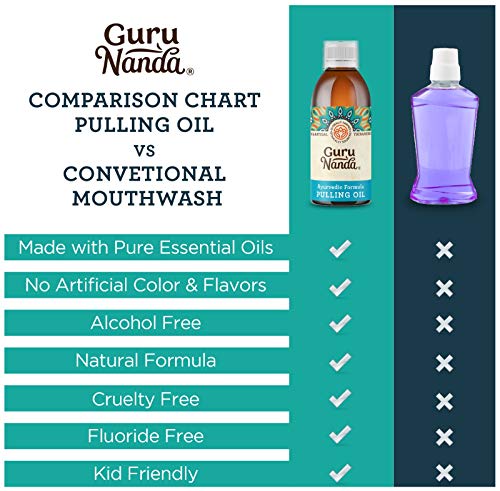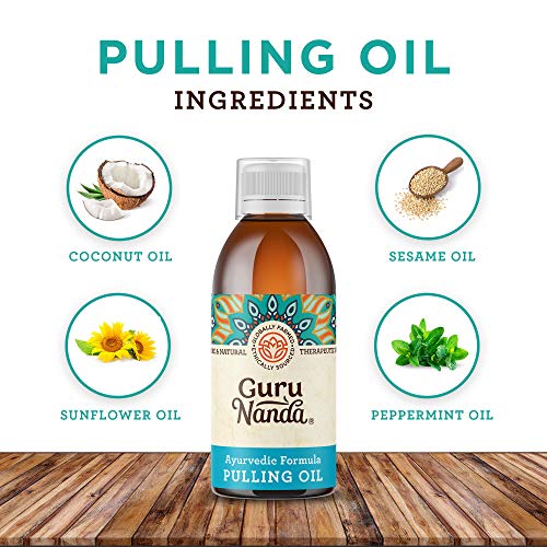 GuruNanda Pulling Oil is 100% alcohol-free and contains no artificial flavors or colors. Our Oil is rich in Omega-3 fatty acids and contains iron, calcium, and magnesium, plus Vitamins A, B and E.