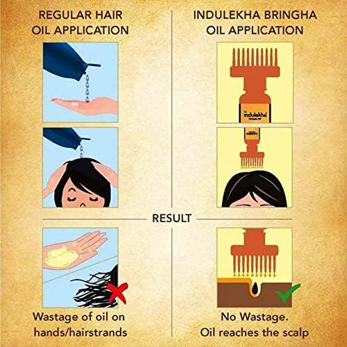 Applicator: selfie bottle oil can be directly applied to the scalp ; Ingredients: Bringha (Eclipta Alba), Svetakutaja (Wrightia tinctoria), Virgin Cocunut Oil