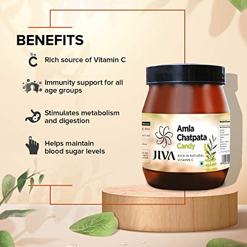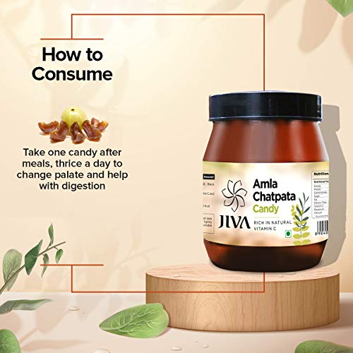 MADE FROM 100% NATURAL INGREDIENTS: Jiva Amla Chatpata Candy is made from fresh, seasonal amla, black pepper and Ayurvedic herbs. A rich source of Vitamin C, anti-oxidants and nutrients, Amla boosts immunity and rejuvenates the system. It is good for the eyes and hair. Seasoned with black pepper and Ayurvedic herbs, the Amla Candy andy also aids in digestion.