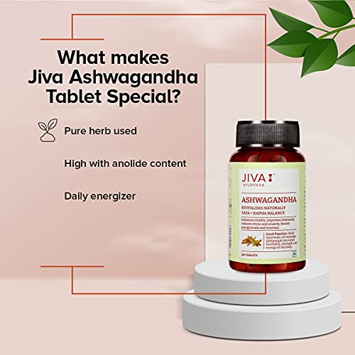 Jiva Ashwagandha Tablets are made from the pure root extracts of the Ashwagandha herb. This potent herb balances Kapha and Vata doshas which provides overall wellness of mind and body. It is not only a good stress buster but also provides powerful doses of energy.