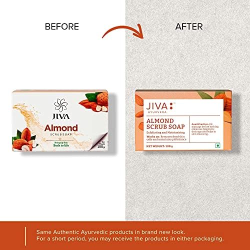 JIVA AYURVEDA – SCIENCE OF WELL-BEING: Made using Ayurvedic methods, Jiva Almond Scrub Soap is an authentic, natural soap that encapsulates the goodness of Ayurveda. Formulated with natural herbs and exfoliants, this soap represents our 30 years of Ayurvedic excellence & expertise.