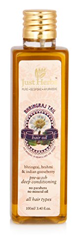 Bhringraj oil is an ancient formulation of therapeutic herbs which help invigorate and revitalize the scalp thus stimulating the hair follicles for more healthy new growth of hair. Hot oil deep conditioning treatment with this oil helps prevent hair fall, dandruff and delays greying. It also helps hair becoming naturally black and luminously shiny. An excellent tonic for the Nervous System, it also promotes sound sleep.