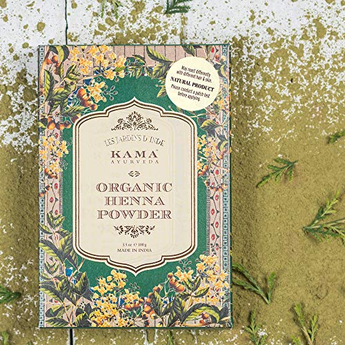 Kama Ayurveda 100 percent Organic Henna is made with Organic Henna leaves from Rajasthan . It is Certified Organic by Ecocert India Pvt Ltd. Henna has been used since the Bronze Age to coloue skin, hair and fingernails . Henna;s colouring properties are due to Lawson, a burgundy organic compound that has an affinity for bonding with protein . The colour that results from dying with henna can fall into a broad spectrum , from auburn ,to orange ,burgundy , chestnut brown . HENNA FOR HAIR: Henna is an excellent herbal conditioner and colorant. It nourishes the hair making it shiny, soft and silky. Henna repairs and seals the cuticle, thus helps in healing hair shaft, preventing hair breakage. Henna balances the pH of the scalp, thus, preventing premature hair fall, graying and dandruff. It also reverses the effects of pollution on hair as well as dryness due to excessive blow drying, dyeing etc. Henna also has anti-fungal and preservative properties. HAIR CONDITIONONG : Mix henna with curd or water to make a paste and apply it all over the head , wearing hand gloves. Rinse the mixture off your hair after an hour or so . You might have to wash your hair a couple of times , before you get rid of all the henna from your hair . Oil hair post wash for better gloss and shine . HAIR DYING: To colour your hair dark , mix the henna powder , lemon juice , coffee and water in an iron skillet to make a paste and let it stay overnight. However if you wish to colour vibrant reddish brown do not use skillet or any iron utensil . Apply it all over the head, wearing hand gloves . Rinse the mixture off your hair after an hour or so. Henna for Bodyart (Temporary tatoos): The paste can be applied with many traditional and modern motifs with innovative tools, including toothpick, a cone, Jac bottle or fingers.