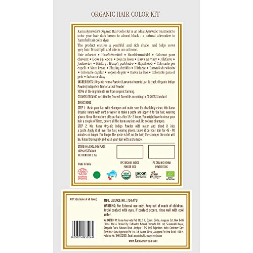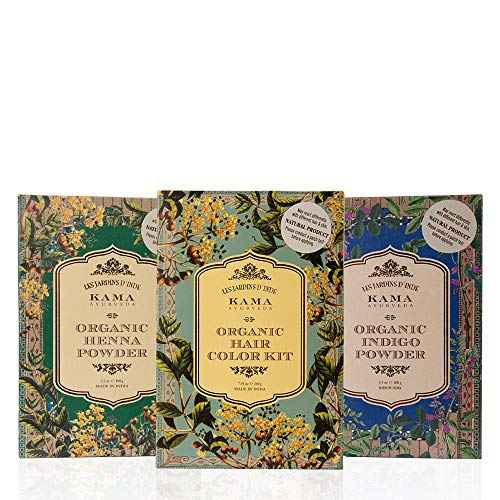 Made from Organic Henna and Indigo plants, this coloring kit is a perfectly natural and chemical-free way to color hair a deep, rich, black color at home. Henna nourishes the hair leaving shiny, soft and silky. Henna also balances scalp pH, corrects environmental and pollution damage thereby preventing premature hair fall, graying and dandruff. It’s anti-fungal and anti-bacterial properties keep the scalp healthy and protected. Indigo powder is a highly pigmented powder that helps in covering greys, volumizes hair strands and helps rebuild hair health and strength. While other hair colorants strip away essential nutrients from strands, Indigo when combined with Henna is a safe and effective method to color hair black without compromising on hair integrity.