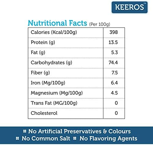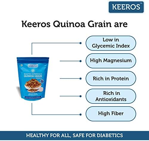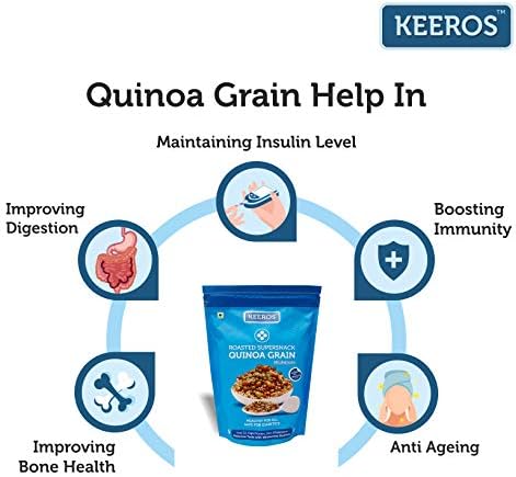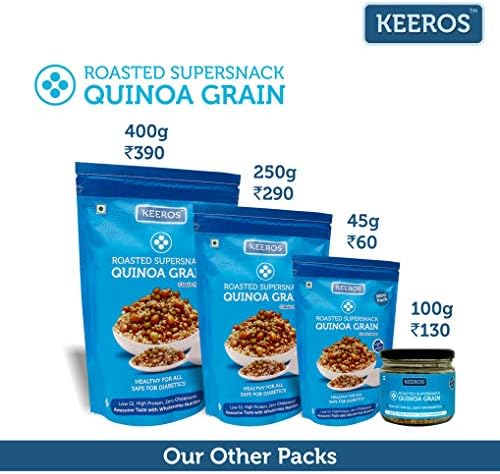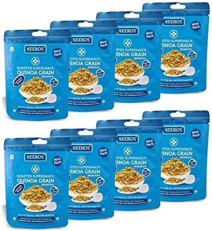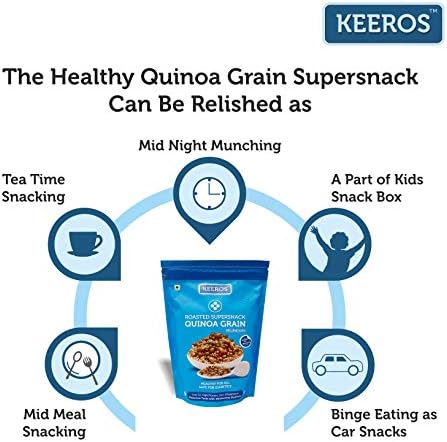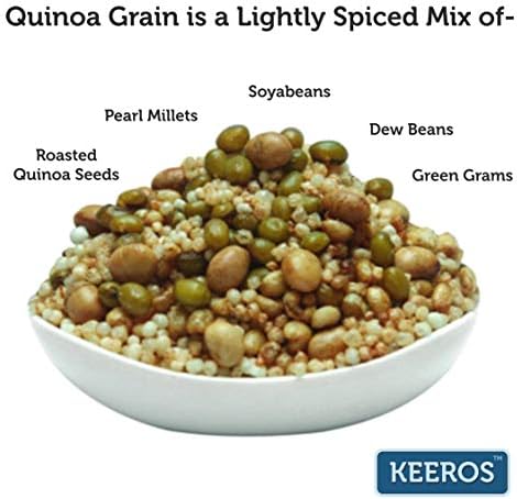 Keeros brings to you Quinoa Grain Healthy Super snack a healthy roasted mixture of 4 super grains- dew beans, soya beans, pearl millets and green grams rich in vitamins, iron, magnesium and potent antioxidants that helps in building a healthy enzyme functioning for your body thus helping to boost your immunity.