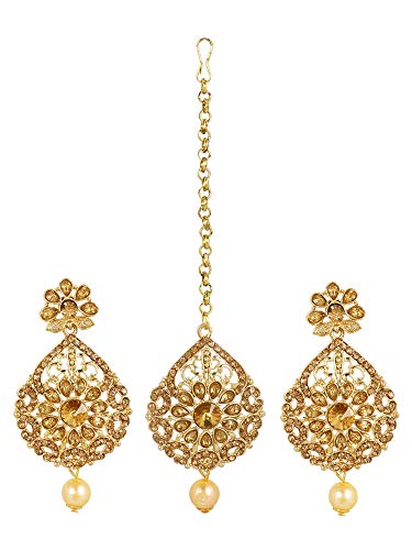 Kord Store Present Indian Traditional Latest Rajwadi Stylish Designer Antique Gold Plated Wedding Collection Earrings Maangtika Set For Women and Girl. Product Contains: 1 Pair of Earring + 1 Maang Tikka. Quality Assurance: Our product quality is as per International Standards that makes it very skin friendly. We use premium quality Diamonds, Kundan, Moti, Beads. Our Product made from toxic free materials anti-allergic and safe for skin. It can be worn over long time periods without any complains of ach and swelling. Perfect gift: Wedding, Birthday, Diwali, Raksha Bandhan, Baby Shower, Valentine, Anniversary, Birthday, Occasional and Surprise gift to your loved ones. Product Care Instructions: Avoid direct contact of water, perfume sprays, deo spray etc. Do not use velvet boxes to store of fashion jewelry. Wear jewelry after completion of your makeup and perfume spray. After use of jewelry, wipe with soft cotton cloth and keep inside in eco paper packets. With a Vision to incorporate multiple products in every sector, and a Mission to satisfy our customers with various products; we look forward to share cordial business ethos. Country of Origin: India Name of Mfg / Importer / Brand: Kord Store Address of Mfg. / Importer / Brand: Kord Systems, Kapadia Niwas, 1st Floor, Nadiadwala Colony No.1, S. V. Road, Malad (West), Mumbai-400064, India.
