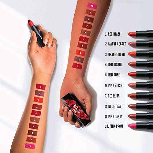 Presenting the new Lakmé Cushion Matte Lipstick. An exclusive new matte lipstick with a revolutionary soft matte formula that makes matte lips feel soft and comfortable. This soft matte lip colour has an intense colour payoff that gives lips a matte yet soft focus effect. The soft matte formula is enriched with rose oil extracts from France which give your matte lips a moisturized, comfortable feel. It’s non-drying formula doesn’t dry your lips and leaves them feeling soft and looking intensely matte. The new Lakmé Cushion Matte Lipstick cushions your lips in a single stroke with its smooth and creamy application. To get an even and uniform matte finish on your lips, start by defining your cupid’s bow, then smoothly glide the lipstick to the other edge of both your upper and lower lips. Lakmé Cushion Matte is a water resistant soft matte lipstick that gives you a long lasting intense matte color and cushion soft lips all day. Choose from 20 vibrant matte shades and wear cushiony soft lips for a variety of occasions. To complete your soft matte look, pair your cushion matte lips with Lakmé Eyeconic Lash Curling Mascara, and Lakmé Impact Eyeliner.