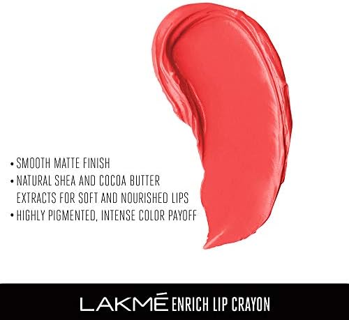 Lakmé is India’s no. 1 colour cosmetics brand offering a wide range of high-end, world-class colour cosmetics and skincare products. Lakmé has a vast product range specially crafted by experts for the Indian skin. The brand has also been redefining fashion in India with Lakmé fashion week, India’s premier fashion event. The Lakmé enrich lip crayon is a newly formulated lip colour crayon, for a soft texture and smooth matte finish. Get soft and colourful lips every day, in 10 different shades of your choice. The Lakmé enrich lip crayons contain a high level of mineral powders, giving your lips a soft matte finish. It also contains a rich mixture of olive oil and jojoba oil which condition your lips. Sketch your lips, and make them your canvas with the new Lakmé enrich lip crayons. How to apply starting from the centre of the upper lip, in your cupid’s bow, follow your lip line evenly, and fill colour evenly all over the upper and lower lips. Pro tip follow the natural line of the mouth with the crayon, evenly covering the upper and lower lip. To get a softer smoother look blot with a tissue.