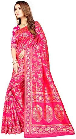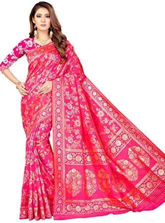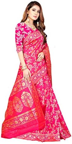 Saree Fabric: Banarasi Cotton Silk, Saree Colour: Pink & Saree Length: 6.3 Mtr(Including Blouse)