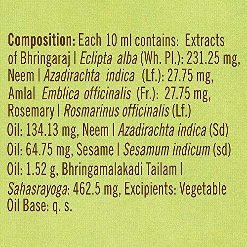 Lever ayush hair oil contains Bhringa Oil which is know to provide Keshya properties i.e. it nourishes, strengthens and promotes natural hair growth.