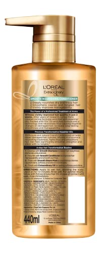 Hydrate, condition and transform dry, lifeless hair to soft and silky with the L’Oréal Paris Extraordinary Oil Conditioner for women. The L’Oréal Paraben free conditioner makes it easier to manage your hair while protecting the hair shafts from damage. Formulated with precious transformative essential oils, this deep conditioner for hair helps reduce breakage and split ends, and softens and detangles your strands, making your hair 97% smoother in just 1 use. The L’Oréal hair conditioner is one of the best conditioners for dry and frizzy hair as it eliminates dryness in a single wash. For best results, use the L’Oréal Paris Extraordinary Oil Smooth Shampoo before the L’Oréal Paris Smoothening conditioner to achieve hair that is sumptuously soft, lightweight, and brilliantly shiny with 4X more nourishment.