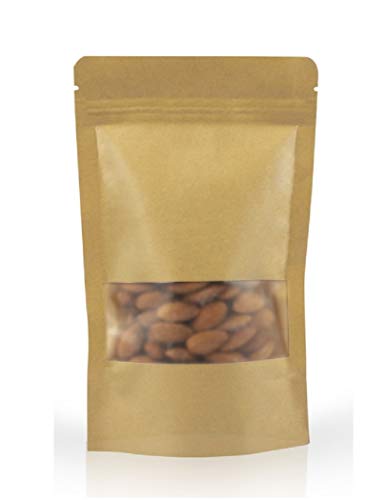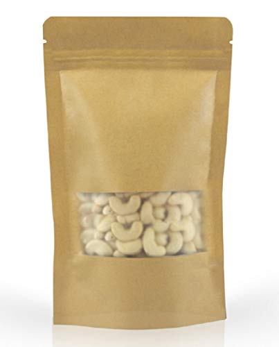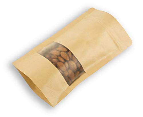 Our brown Kraft paper standup pouches are made of high quality food grade Kraft paper and inner lamination will keep the products odour free and retains the freshness. It specially designed to pack organic products. Matte finish look gives the natural feel to your products. It features a full-width window to product display and zip-lock to securely seal products. Once you fill the product, the bottom gusset enables the pouch to stand by itself. The product can be filled from the top open and seal it using either hand seal or band seal. These pouches ensure safe packaging and keep the item in its original condition for long, which makes them widely demanded in food & confectioneries industries. You can choose from a wide variety of sizes according to your requirements. Highly used for super foods, tea, cookies, nuts, seeds, chocolates, dried fruits, candy, etc…