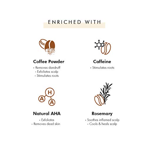 PURE COFFEE AND CAFFEINE INFUSED, HEALTHY HAIR: The Coffee Scalp Scrub is made up of pure coffee powder that is a natural exfoliator and helps to get rid of all the dandruff from normal, dry to oily scalp types. Infused with coffee and caffeine which is a superfood for your hair, this scalp scrub helps to achieve a clean and healthy scalp.