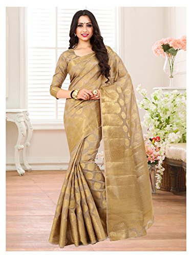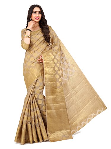 Beautiful art silk saree with amazing Light Brown color unstitched blouse piece. Blouse piece comes with zari butta work all over. You can stitch this blouse piece as per your own design style and size. Saree with blouse piece makes exceptional combination ever!