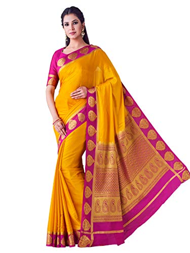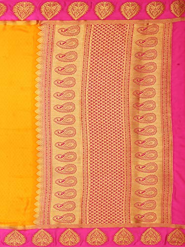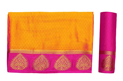 Gold color Traditional Saree,With Woven Embose Design All Over,Has Zari woven Border With Contrast pallu,Comes With Pink Color: Contrast Unstiched Blouse (Included In sarees Length 5.40 Mtr+.80 Cm unstitched blouse) Kindly check our new range of Mimosa and Kupinda Art Silk Saree, Tussar Silk Sarees, Chiffon Sarees, Crepe Sarees, Raw Silk Sarees, Paithani Sarees, KalamkarI Prints Sarees, Cotton Silk Sarees ,Latest Silk Sarees, Kuppadam Pattu Sarees, Uppada Pattu Sarees ,Patola Sarees, Official Wear Sarees,Party Wear Sarees ,Kanjivaram Sarees, Kanchipuram Sarees on AMAZON STORE