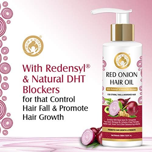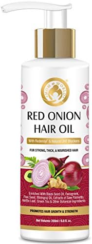 Get strong, thick, and nourished hair with Mom & World Red Onion Hair Oil. Red Onion is a great source of Sulfur, which is needed for growing strong hair. When added to the hair and scalp, Red Onion Hair Oil can provide extra Sulfur to support healthy and thick hair, thus preventing hair loss and promoting hair growth. The nutrient-rich Hair Oil also helps to stimulate collagen production. Collagen, in turn, helps in the production of healthy skin cells and hair growth. This powerful Hair Oil helps to boost blood circulation in the scalp. It contains a rich blend of natural cold-pressed oils like Red Onion Oil, Bhringraj Oil, Argan Oil, Macadamia Oil, Rosehip Oil, Curry Leaf Oil. Additionally, it contains the clinically researched hair growth promoter, Redensyl, that further enhances hair growth. The Oil intensely moisturizes the scalp and the hair strands, keeping hair free from tangles and giving them smooth, glossy, and strong texture. It also increases the resilience of the hair strands, strengthens the brittle hair, and minimizes hair breakage and split ends to make your hair healthy. The Hair Oil is completely safe to be used on colored & chemically treated hair. It is free of harmful chemicals & toxins such as Silicones, Parabens, Mineral Oil, Dyes & Synthetic Fragrance.