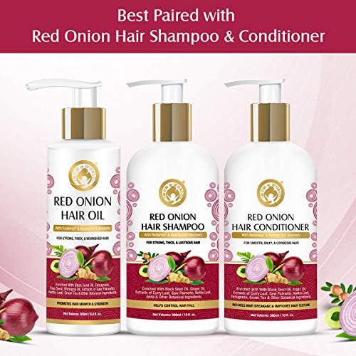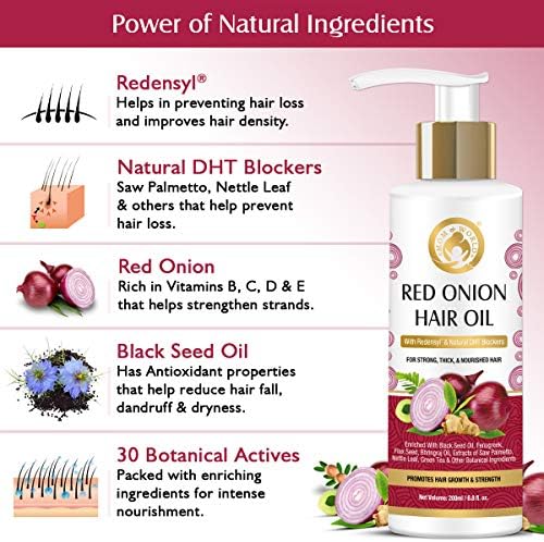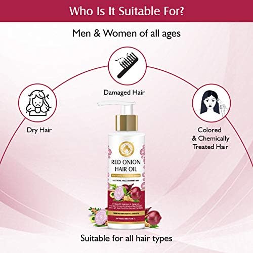 All the ingredients help strengthen roots & stop hair fall. The blend of nourishing oils like red onion oil, bhringraj oil, and curry leaf oil makes hair strong from the inside