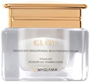 Give It To Me Quick: Moisturises, nourishes and brightens dry, dull skin Powered with rosehip oil ? a multivitamin, brightening and moisturising elixir Gives your skin an iridescent glow Hydro crystal complex system locks in moisture Tell Me More: Glow up every day with this luminous cream. The GLOW Iridescent Brightening Moisturising Cream by MyGlamm is enhanced with a hydro crystal complex system that locks in moisture, giving you soft, younger-looking skin. The powerful vitamins and antioxidants present in rosehip oil heal and strengthen the skin.