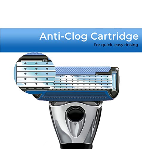 ✔ MODERN TECHNOLOGY: Specially designed lubrication strip reduces friction and shaving irritation. The reusable razor handle and replacement razor blades pivot to shave delicate areas. Optimized soap bar on razor refills improves cartridge balance.