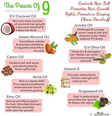 A mix of 9 natural oils that are known to vitalize and keep your scalp well nourished. It contains Jojoba oil, Sweet almond oil, castor oil, amla oil, grapeseed oil, emu oil, vitamin E and extra virgin olive and extra virgin coconut oil.
