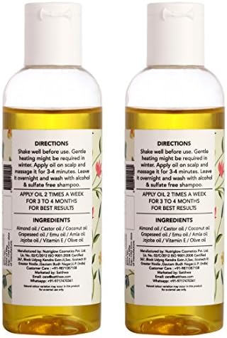 Active Ingredients Include: Almond oil, Jojoba oil, Grapeseed oil, Extra Virgin Olive oil, Emu oil, Amla oil, Castor oil, Vitamin E & Extra Virgin Coconut oil