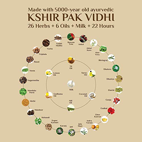 Made using 5000-year-old, ancient Ayurvedic recipe of boiling herbs in milk for over 22 hours to naturally maximize efficacy and potency of the oil.