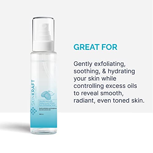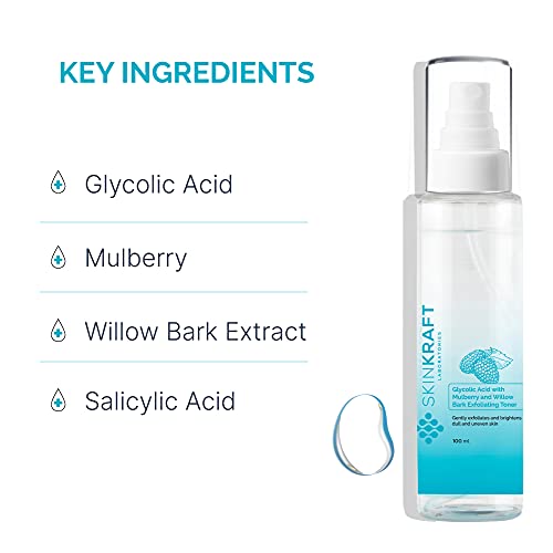 SkinKraft’s Glycolic Acid with Mulberry and Willow Bark Exfoliating Toner cleans and nourishes the skin, making you feel relaxed and rejuvenated. It lets your skin breathe and recharge. Each soothing mist of this toner delivers intense hydration, while improving & balancing skin’s natural complexion. It also reduces post-cleansing skin dehydration as hydrated skin can absorb other products better than dry skin.