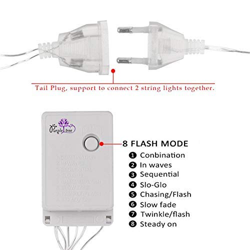 Has 8 mode settings: combination, in waves, sequential, Slo Glo, chasing/flash, slow fade, twinkle/flash and steady on, easy to use, directly plug in and unplug it for power on and off