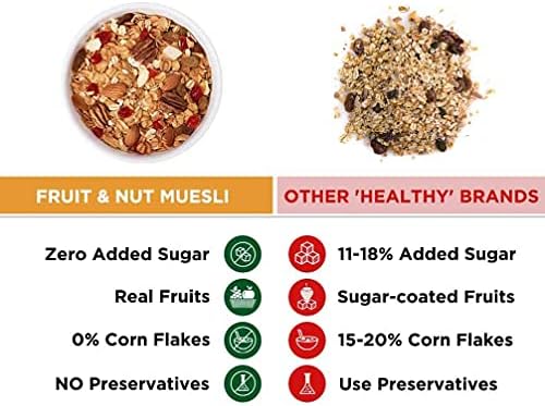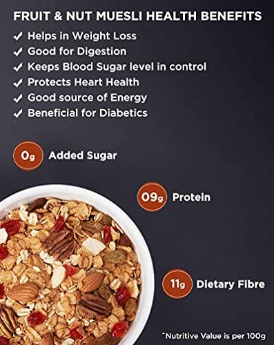 Our Fruit and Nuts Muesli is highly rich in Fibre, which prevents you from binge-eating and keeps your cravings at bay.