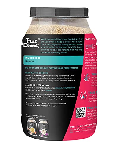 True Elements Quinoa for weight loss is naturally gluten-free, composed of a mixture of vitamins, minerals and nutrients, required by the body for carrying out the overall functioning of the human body. These are small White Quinoa Seeds which are power-packed with protein, containing about 20g of protein in 100g of serving and is a fantastic wheat-free alternative, providing all the nine essential amino acids.